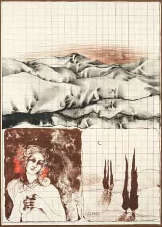 Lithograph in colours on paper. Hand-signed, dated 1972 and numbered 13/15. Further signed on the stone.