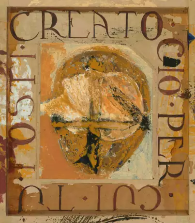 Cio per cui tu fosti creato. Mischtechnik mit Collage. Verso betitelt und signiert. Masse 53,3x60,3 cm.