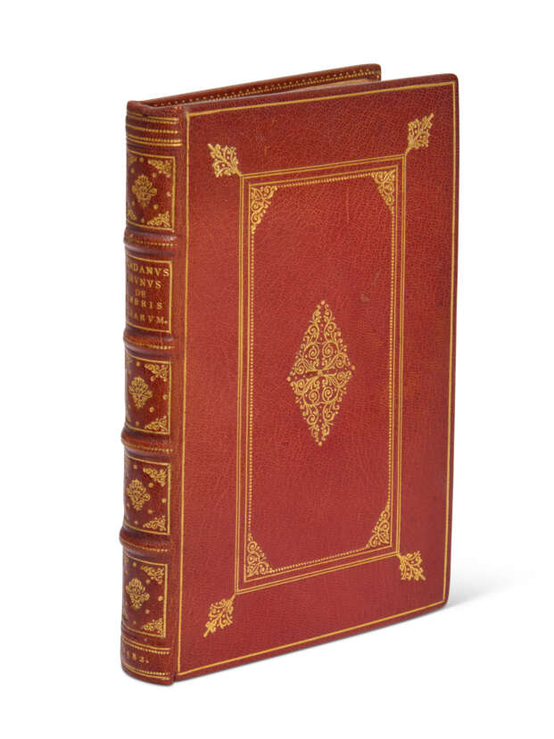 2 parts in one, octavo (169 x 100mm). Woodcut and type ornament headpieces, woodcut initial letters, 12 astrological diagrams and 19 animal and human figures in text. Full red morocco gilt by Anker Kyster (Denmark, 1864-1939), red speckled edges (minor stains to rear endpaper). Provenance: ‘EC’ (unidentified monogrammed bookplate on front pastedown).