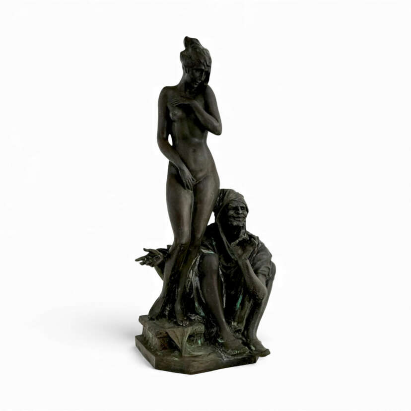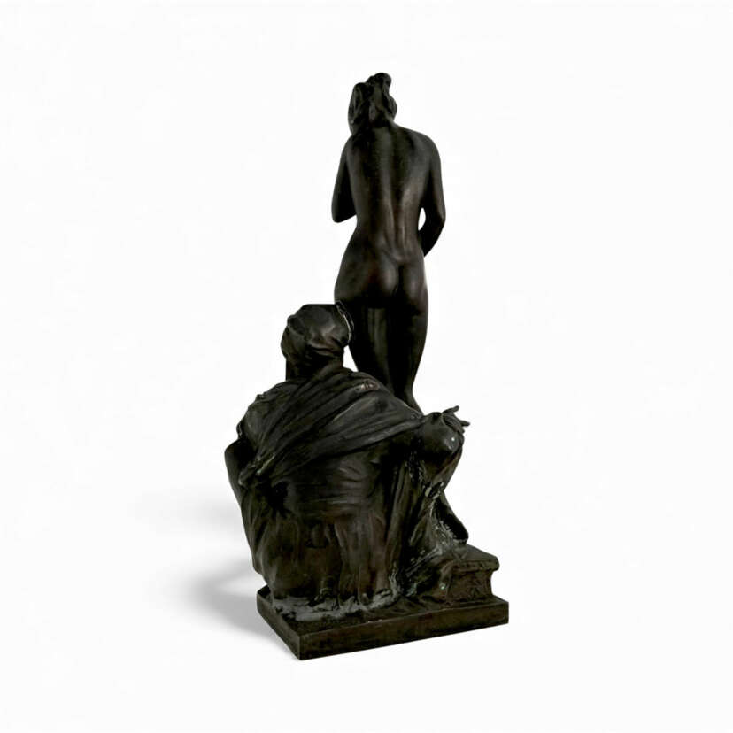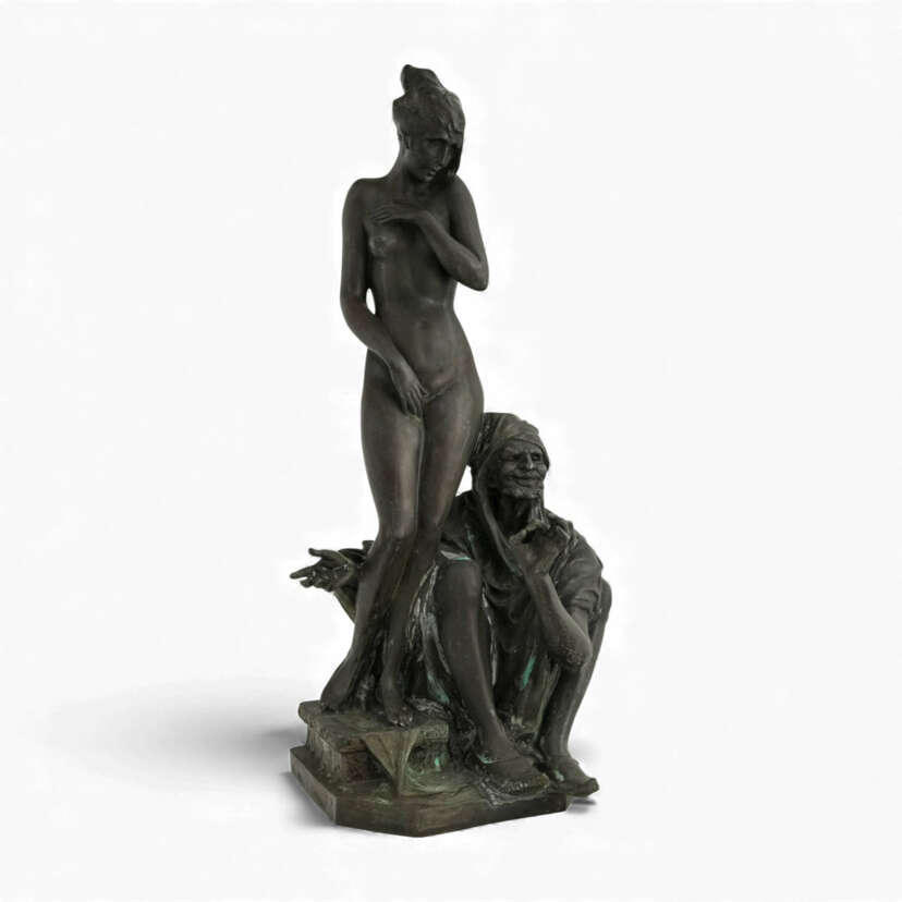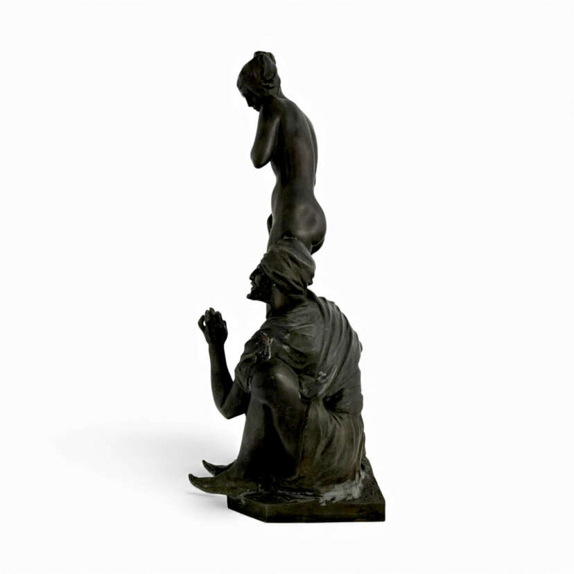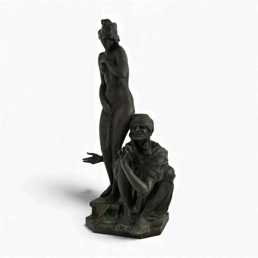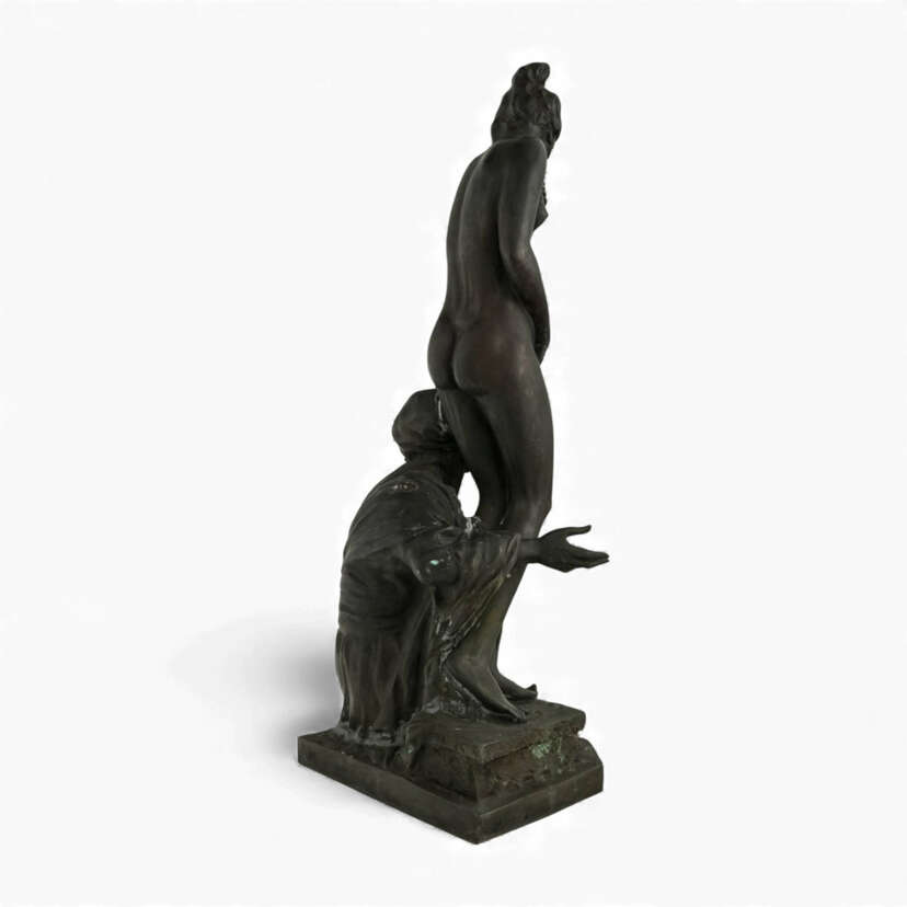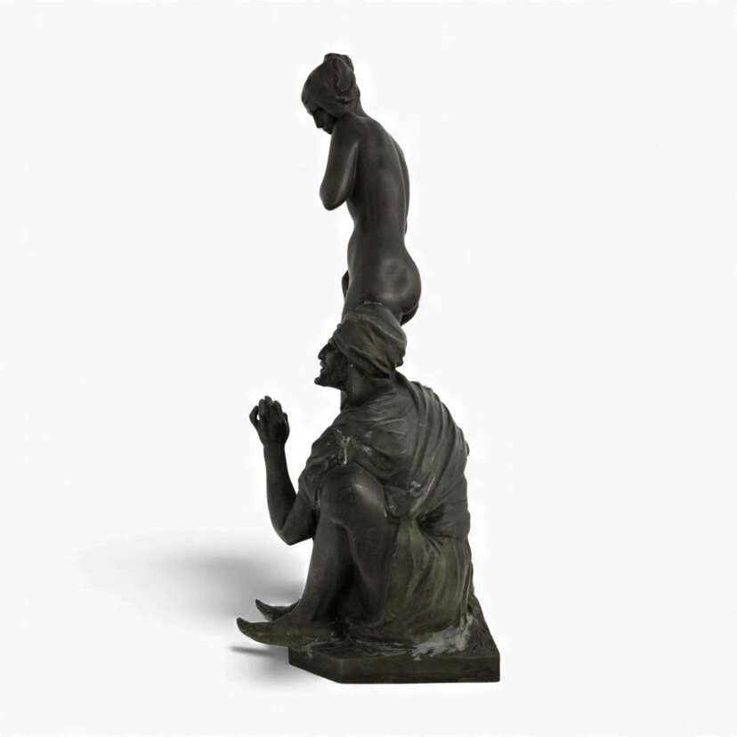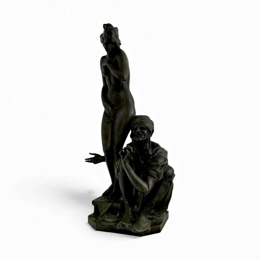 Oriental and slave, bronze, dark patina, height 66.5 cm, signed in the cast, partial traces of corrosion, worn patina