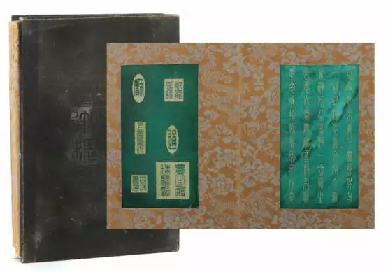 Лот 2565 | Buch mit 8 Jadetafeln China, 20. Jh., gebundenes Buch mit Brokatrücken…