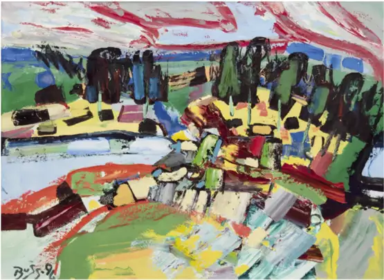 Лот 118 | Buss, Valdis (1924-2014) "Land der Seen", Öl/Lw., sign. u.l. und dat. ´96, rückseitig bez., 61,5x79 cm, Rahmen