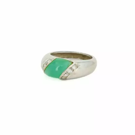 gold. The ring rail has already been resized. The chrysoprase has a small crack and has