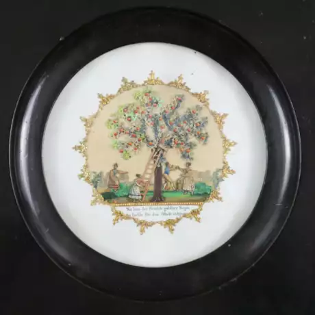 Лот 584 | Collagenbild - um 1800, Papier/Stoff, runde Miniat…
