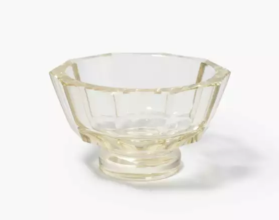 Nancy, um 1930. Bernsteingelbes Glas mit Facettenschliff und aufgeschmolzenem Rundfuss. Am Fuss signiert "DAUM, Lothringerkreuz, NANCY FRANCE" (graviert). D 16,5 cm.