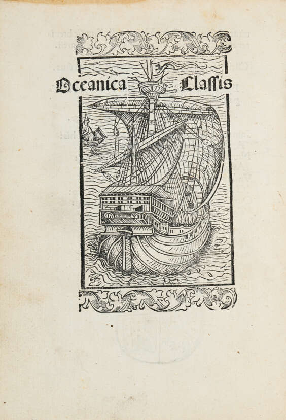 (6) A fine full-page woodcut of a caravel, the words "Oceanica Classis".