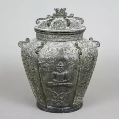 Лот 805 | Deckelvase - tibetochinesisch, Metall bronziert, B…