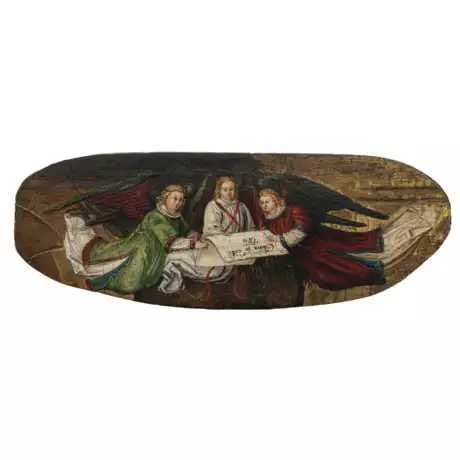 Oil on panel. In an irregular oblong oval: 10 x 26.5 cm. Restored. Damaged. Minor damage to frame (18 x 36 cm).