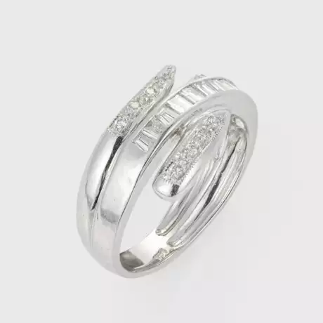 Weißgold, gest. 585. Schauseitig besetzt mit Diamantbaguetten und Brillanten von zus. ca. 0,90 ct. (H/vs). Gew. ca. 4,61 g.
