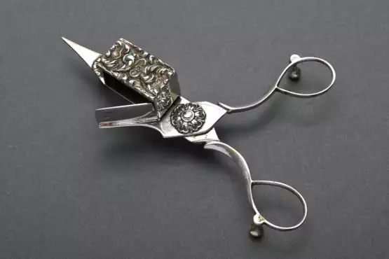 Wick trimmer with floral relief, 800 silver, 87g, …