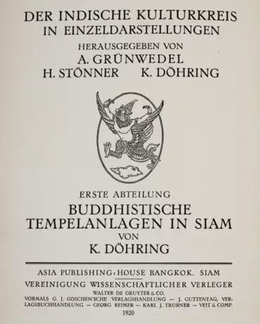 (= Der indische Kulturkreis in Einzeldarstellungen, erste Abt.). - Reich illustriertes Werk über Kunst und Kultur Thailands mit hervorragenden Abbildungen. - Ohne den zweiten Tafelband.