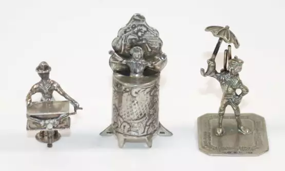 kleines Puppentheather, Frau mit Reisig. Holland 835 Silber. Feine Miniaturen.
