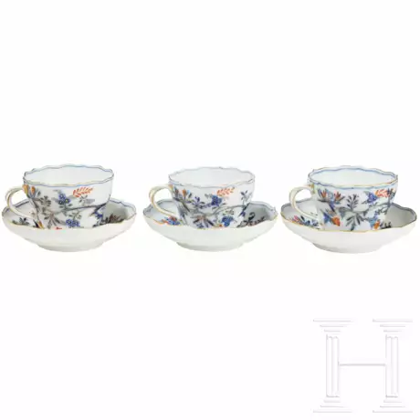 Лот 7505 | Drei Tassen mit Untertassen in "buntem Zwiebelmuster", Meissen, um 1920