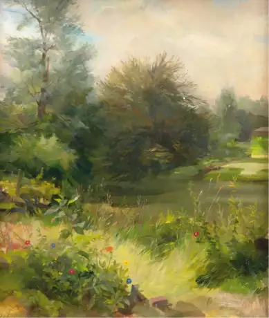 Лот 159 | Drescher, Arno (1882, Auerbach/Vogtland-1971, Braunschweig) "Sommerlandschaft", Öl/Mp., sign. u.r., 44x37 cm, Rahmen