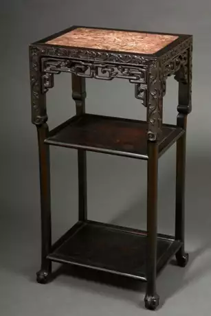 Square blackwood stand with finely carved frame and red-veined marble top, circa 1900, 82x41.5x31cm