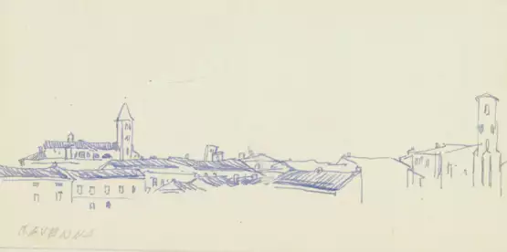 Darunter Ansichten aus Ravenna, Rimini und Verona. - In: Hausenstein,W. Reisetagebuch eines Europäers. 2. Aufl. Mchn., Prestel 1968. Olwd. - Titelbl. mit Exlibris-Stempel Eisenmenger.