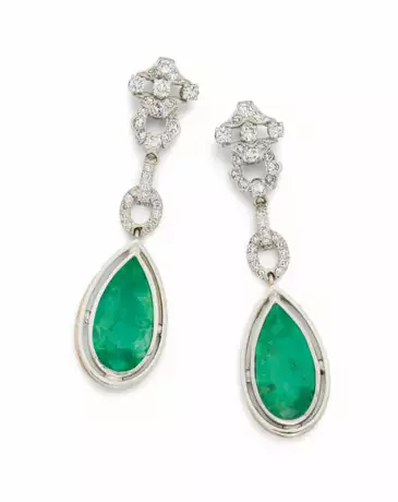 Лот 92  | Elegant Emerald-Diamond-Ear-Jewelry