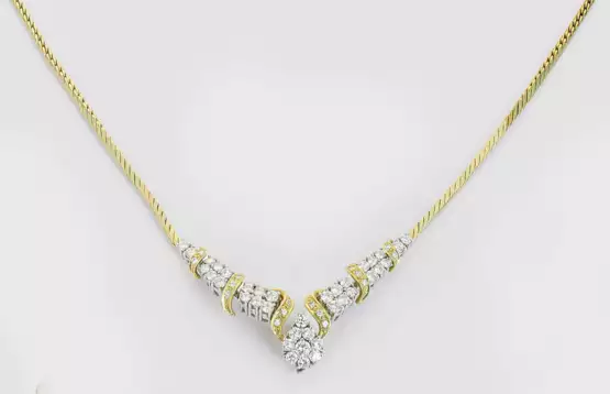 Necklace set with diamonds approx. 2,00 ct. (H-I/vvs), in 14 k white and yellow gold. Middle part wearable as a pendant.