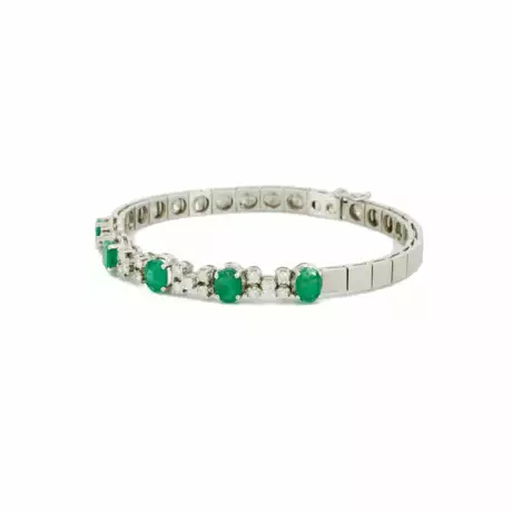 section of which is alternately set with emeralds and brilliant-cut diamonds in prong