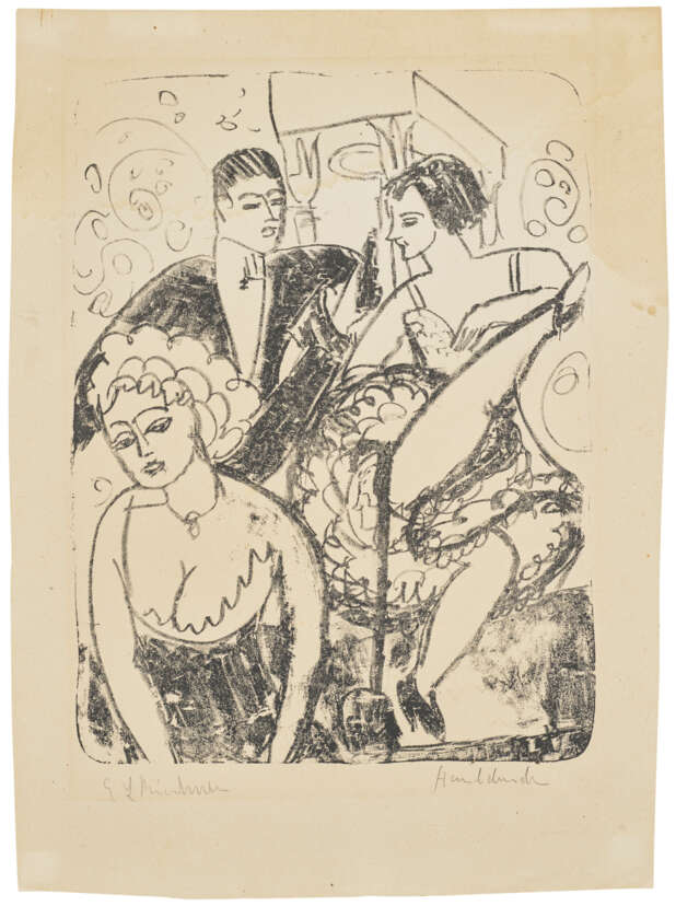 lithograph, 1911, on firm grey wove paper, first state (of two), probably unique (Gercken records only the present impression of the first state, and two of the second, final state), signed in pencil by Erna Schilling, inscribed Handdruck, stamped on the reverse Unverkäuflich E. L. Kirchner, and with the artist's estate stamp numbered L 119 I in black ink verso