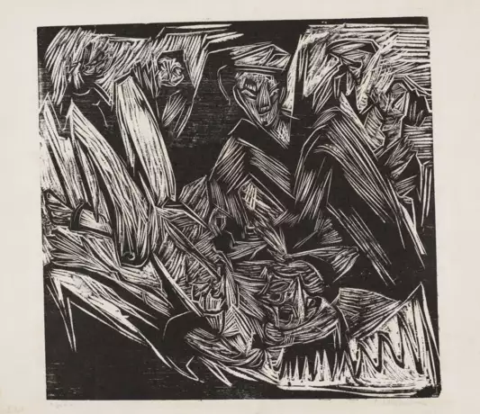 - Outstanding example of an expressionist woodcut that reflects Kirchner's existential crisis during the First World War
