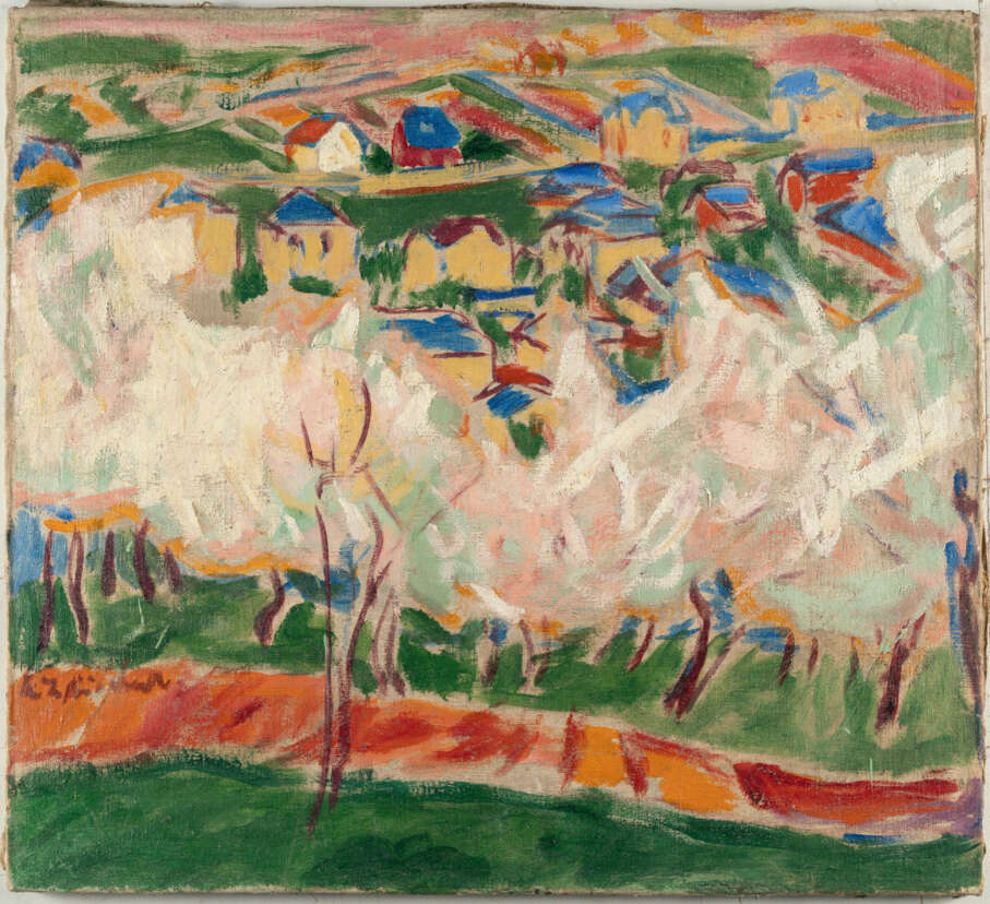 Ernst Ludwig Kirchner. Recto: Landscape with white blossoming trees - Verso: Acrobatic dancer