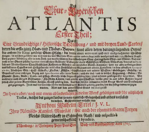 Lentner 15252. Nebehay/W. 170. Vgl. Maillinger I, 831, Pfister I, 470 u. Spindler II, 803. - Die bedeutende, erstmals 1687 (u. unverändert 1690 u. 1703) erschienene Topographie v. Ober- u. Niederbayern u. der Oberpfalz, "mit den wohl besten Ansichten aus dieser Zeit" (Lentner) in der letzten, erstmals veränderten u. erweiterten Ausgabe. Im 1. Band werden die Städte, im 2. die Klöster dargestellt. Der oft fehlende Anhang bringt eine Aufstellung der bayer. Örter, Territorien usw. - Tl. 1 ohne die gefalt. Entfernungstabelle. Wasserrandig, tls. etw. gebräunt u. fleckig, wenige Tafeln u. Textseiten mit etw. Randläsuren.