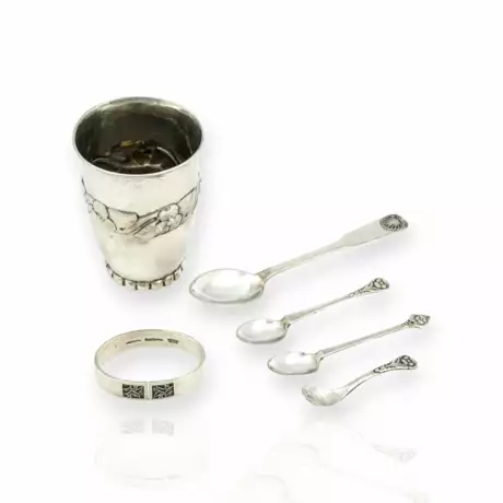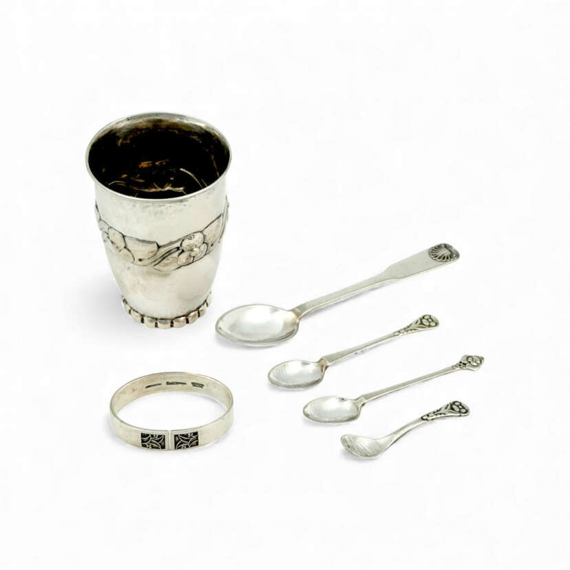 Лот 90 | Evald Nielsen vase with four spoons and a napkin ring
