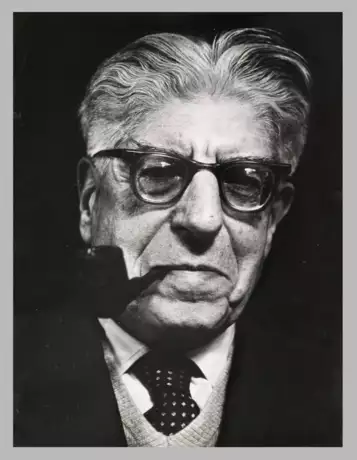 Um 1961. Silbergelatine-Abzug auf Agfa-Brovira-Papier. Ehemals auf Pappe montiert (anbei). Ausdrucksvolles Studioporträt des deutschen Philosophen Ernst Bloch (1885-1977) wohl von Evelyn Richter aus den 1960er Jahren. Fotografie ca. 21,5 cm x 16,8 cm. Minim. Alters- und Gebrauchsspuren, Rücks. mit Klebespuren.