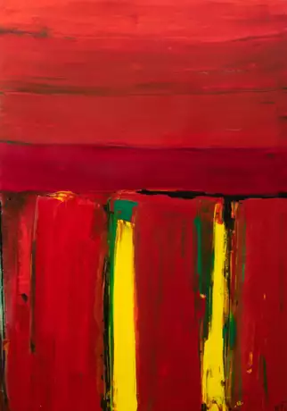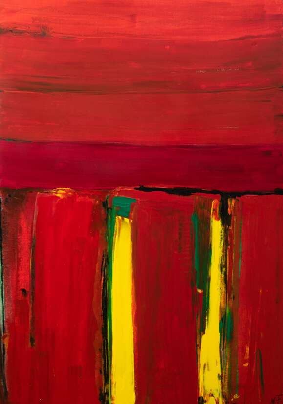 Лот 71 | Flach, Winfried "Abstrakt in Rot", Acryl/ Lw., monogr. u.r. und rückseitig sign. und dat. 2012, 149x100 cm, ungerahmt