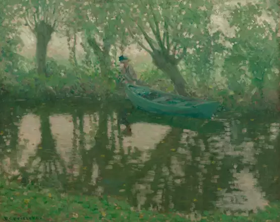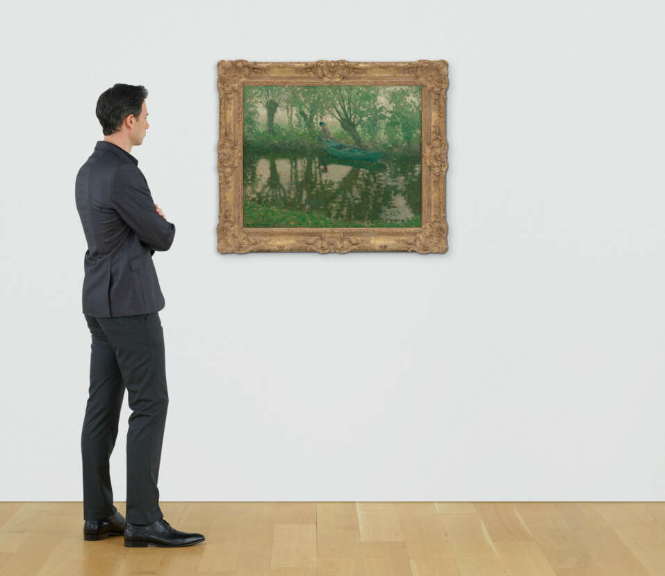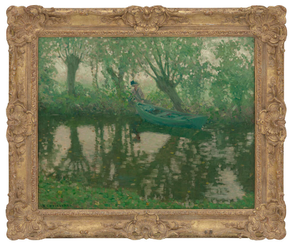 (Probably) New York, Hirschl & Adler Galleries, Inc., Frederick Frieseke, April 12-May 7, 1966, n.p., no. 6 (as Woman and Boat, Giverny).