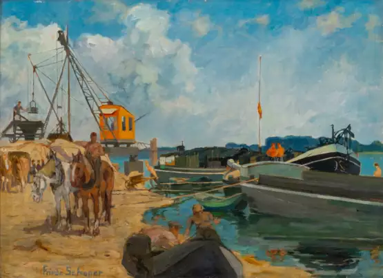 Лот 555 | Friedrich Schaper (Braunschweig 1869 - Hamburg 1956). Hafenkran.