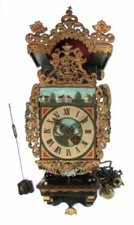 Лот 1235 | Friesische Stuhluhr 18. Jh., Blechzifferblatt mit römischen Stundenzah…
