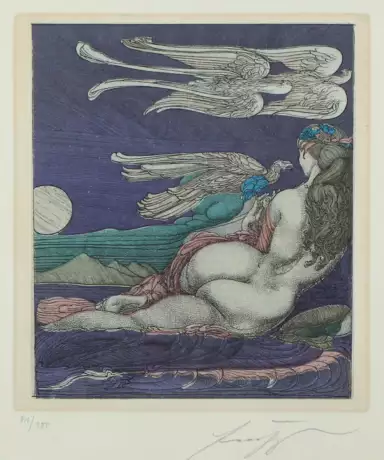 (1930 Wien 2015). Bachnymphe. Farbradierung. 1976. 18,9 x 16,8 cm. - Ex. 81/380 - Auf weißem Rand etw. fl.