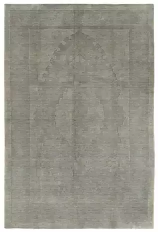 Persien. Wolle auf Wolle in unterschiedlichen, abraschierten Grautönen. Reliefmuster. Im Innenfeld große Reserve und gestrecktes Medaillon mit Anhängern. Umlaufend breite Bordüre. 296 cm x 196 cm.