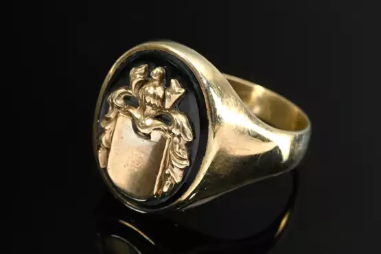 Лот 331 | Yellow gold 333 signet ring with unengraved coat o…