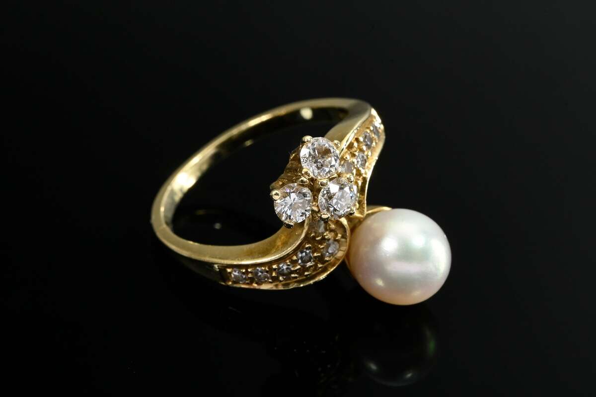 Лот 400 | 585 yellow gold ring with cultured pearl and diamo…