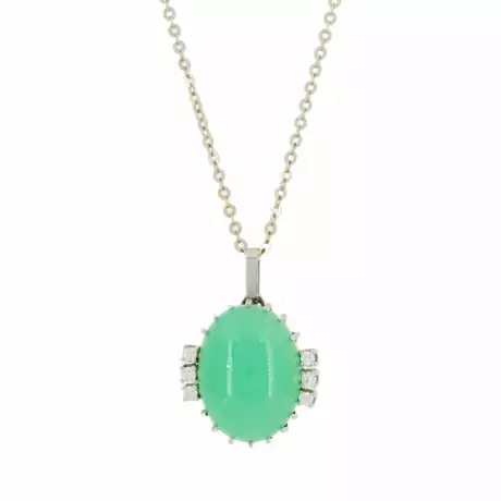 Gemstones: 1 oval gemstone cabochon, probably chrysoprase, 20.0 x 14.7 x 6.9 mm.