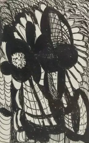 (1882 Walthamstow - East Ham 1961). Ohne Titel. Komposition mit Herz. Tuschzeichnung auf der Rückseite einer Postkarte, 1.H. 20. Jh. Ca. 14 x 9 cm. Unter Glas gerahmt.