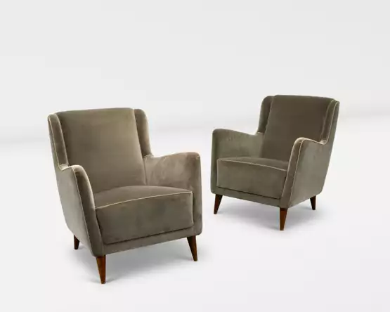 Paire de fauteuils, le modèle créé pour le paquebot transatlantique 'S.S Conte Grande' en 1949, réalisés par Cassina