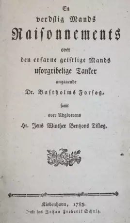 Bibl. Danica, Sp. 557. - Wurmgang (ab S. 55 stärker, tls. ger. Textverlust), Titelbl. mit unterl. Randläs. - Selten. - Provenienz: Adelsbibliothek.