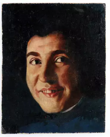 (1736 Winterthur - Dresden 1813), zugeschrieben. Der junge Bellini. "Der symp(h)atische Teufel". O.J. Öl auf Karton. 30 x 24 cm. - Attrib. The young Bellini. Oil on cardboard.