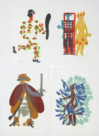 ╔Dabei: Ders.╗ 25 Beilagen mit Motiven überw. aus: Grob, fein, göttlich (1970), sowie 1 Bl. o.T. auf Papier mit Trockenstempel "aus Atelier HAP Grieshaber". - Ex. 108 von 65.