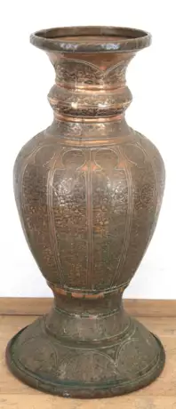 Лот 535 | Große Kupfer-Vase, reich verzierte Balusterform, Gebrauchspuren, H. 78 cm