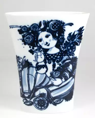 Лот 408 | Große Vase mit figürlichem Blaudekor, Rosenthal studio-linie, Entwurf Björn Wiinblad, ausgestellter Korpus mit ovalem Querschnitt, H. 32 cm