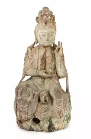 Лот 2564 | Guanyin China, 18./19. Jh., Holz, vollplastisch geschnitzt, Reste eine…