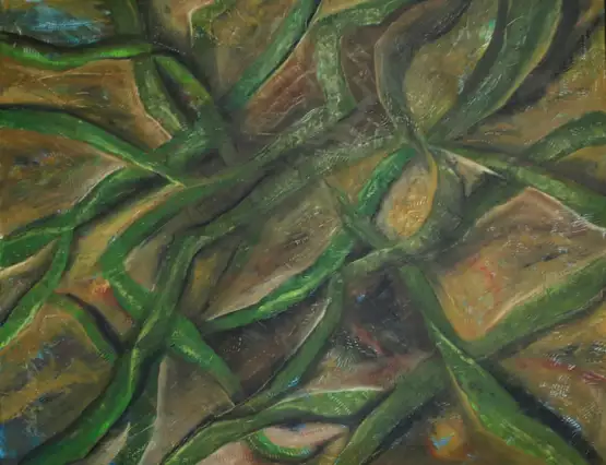 Regenwald I. Ol. auf Holzplatte. ca. 118 x 99,5 cm. Gerahmt.