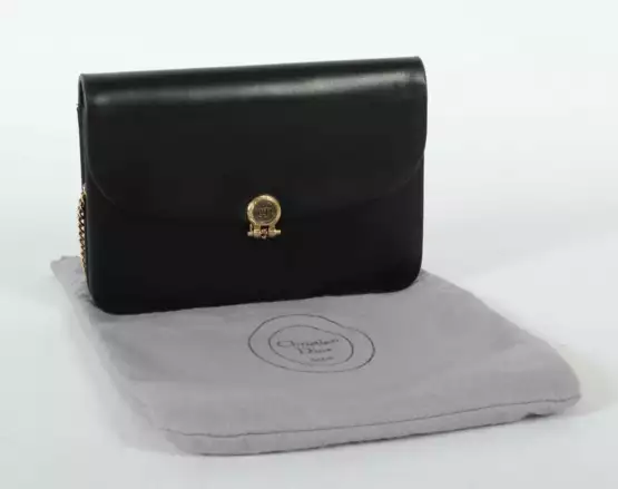 Лот 585 | Handtasche Christian Dior, Frankreich, schwarzes Leder, goldfarbene Ha…