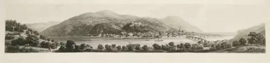 Schefold 26246. - Erweiterte Darstellung des bekannten Panoramas von Hürlimann mit dem Blick stromaufwärts entlang des Neckars. - In den w. Rändern etw. stockfleckig.