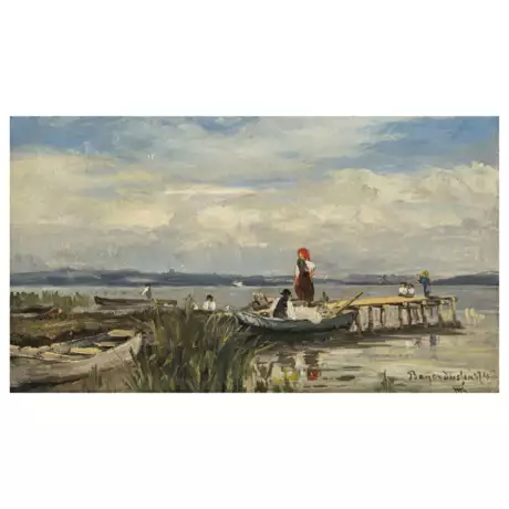 Monogrammed HR, inscribed with the place name "Bayerdiessen" and dated (18)74 lower right. Numbered No. 2806 on an old adhesive label on the stretcher verso. Oil on canvas. 19.5 x 31 cm. Minor restoration. Framed (26 x 38.5 cm).